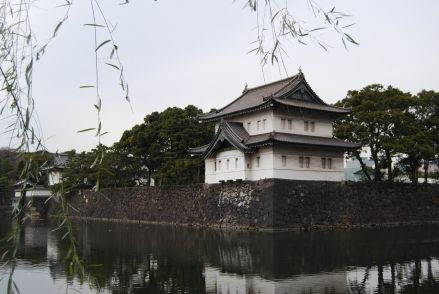 在皇居东御苑的内部是防御工事的遗址——幕府城堡,还是最初的城堡观望台。外苑位于是宫殿东南方的一座花园,有大片的绿地,还有经过精心雕琢的柏树。皇宫南面为皇宫广场。皇宫广场铺满砾石,并有大片草坪与树木。站在皇宫广场即可看见外苑的宫墙以及皇宫著名的景点──二重桥。二重桥是通向皇宫的特别通道。在新年和天皇生日时,公众可通过二重桥进入皇宫并接受天皇的问候。二重桥后面是伏见矢仓,它是原江户城堡的一个观望角楼。